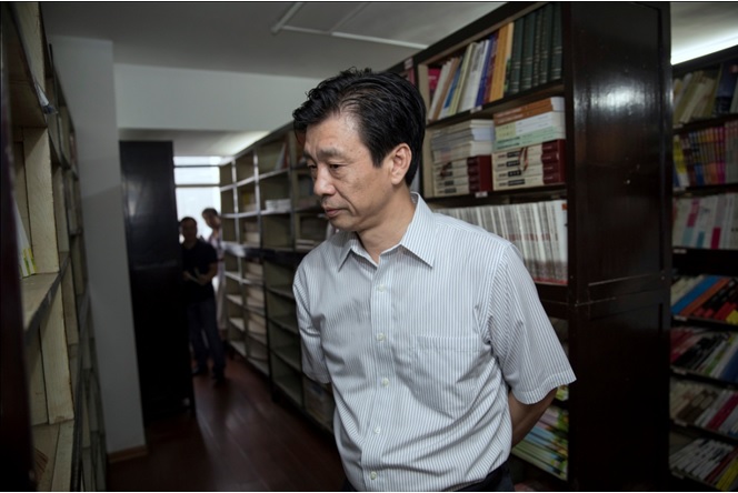 蔡振紅部長參觀湖南人民出版社圖書收藏室。