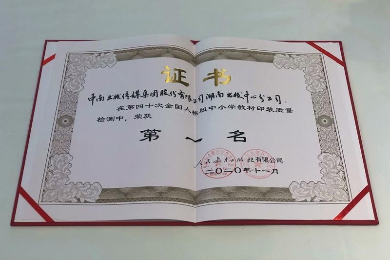 11 月 22 日,第 40 次全國人教版中小學教材印裝質量檢測工作會議在廣西南寧召開,中南出版傳媒集團股份有限公司湖南出版中心分公司蟬聯全國人教版中小學教材印裝質量檢測第一名,這也是繼 2008 年獲得全國教材質量檢測第一名后,湖南第三次獲此殊榮。