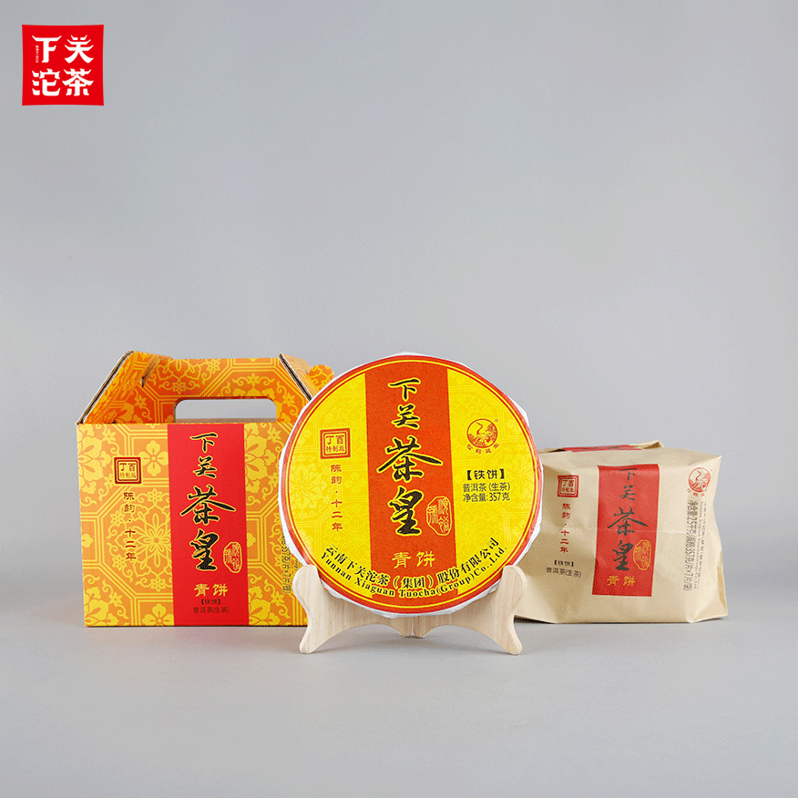 357克紙袋提盒裝下關茶皇青餅 普洱茶(生茶)2017