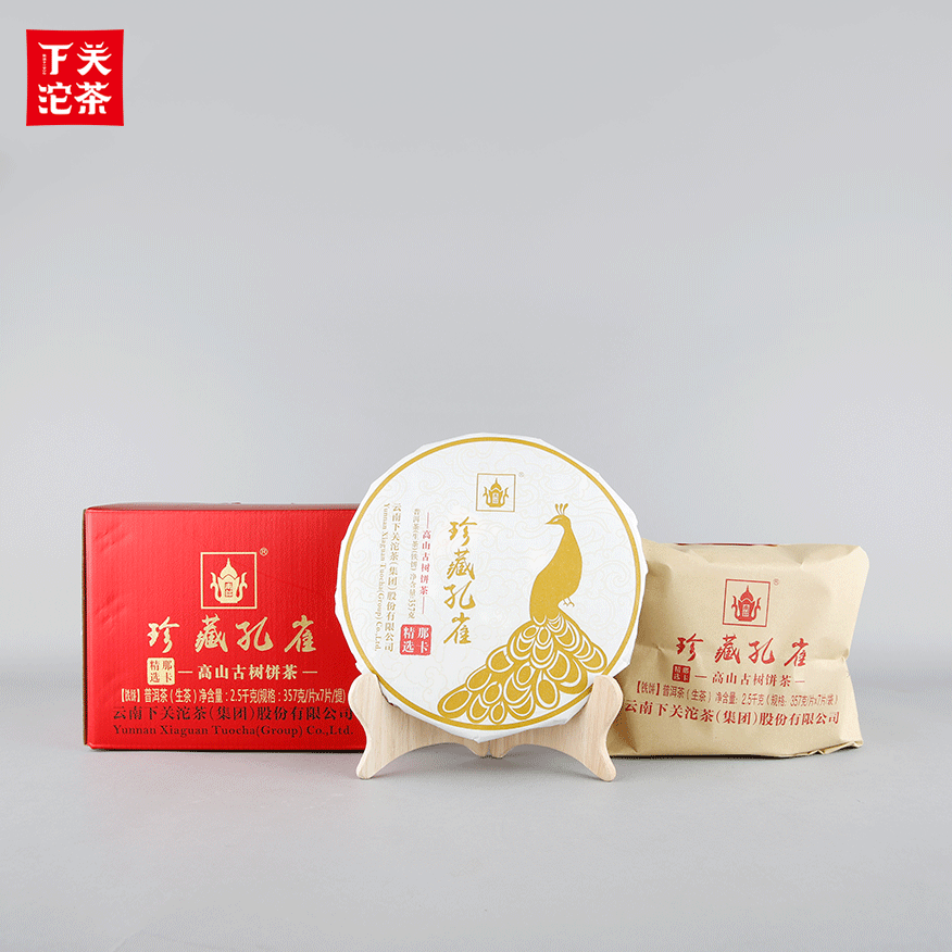 357克紙袋提盒裝珍藏孔雀高山古樹餅茶 普洱茶(生茶)2017