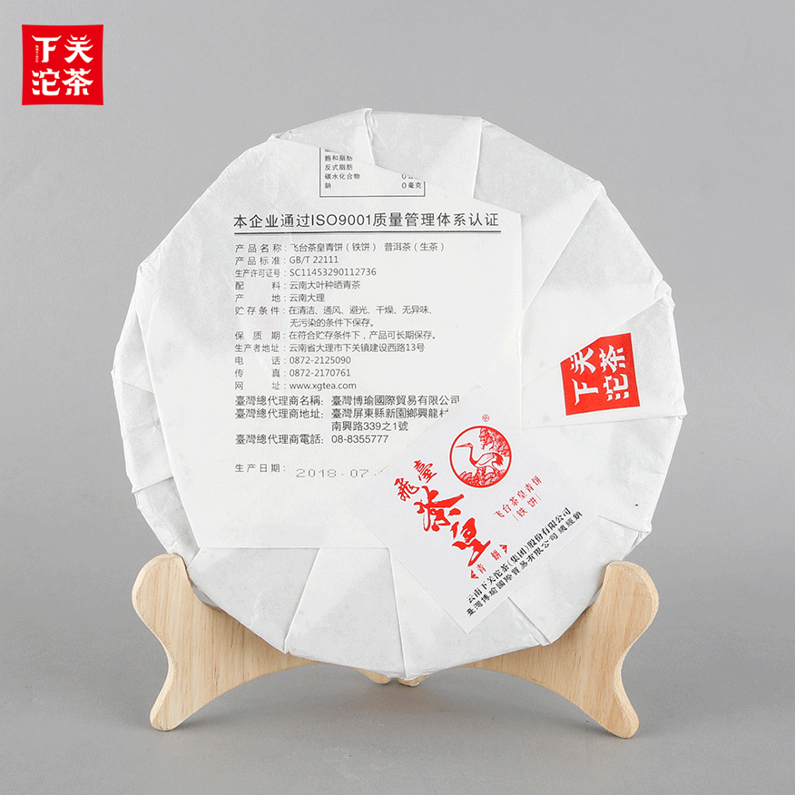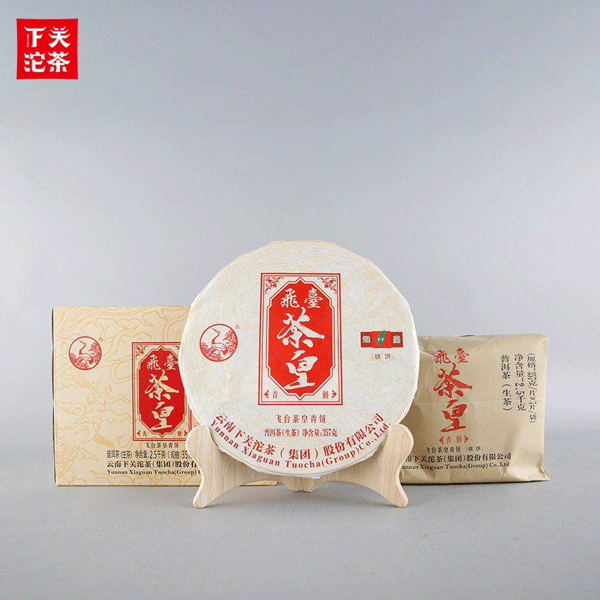 357克紙袋提盒裝飛臺茶皇青餅(鐵餅)普洱茶(生茶)2018