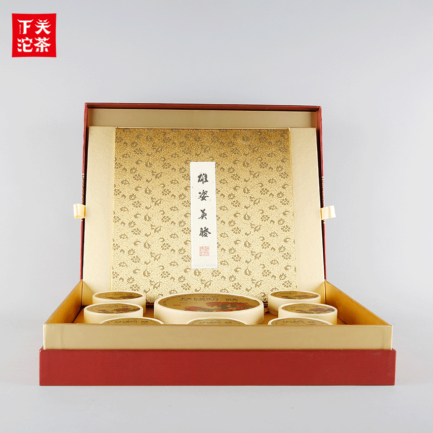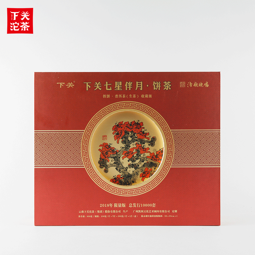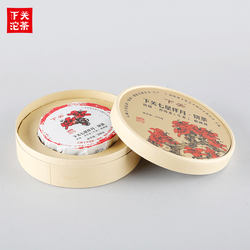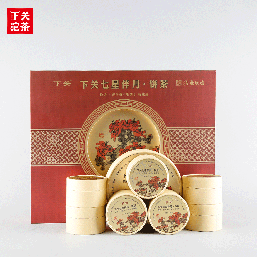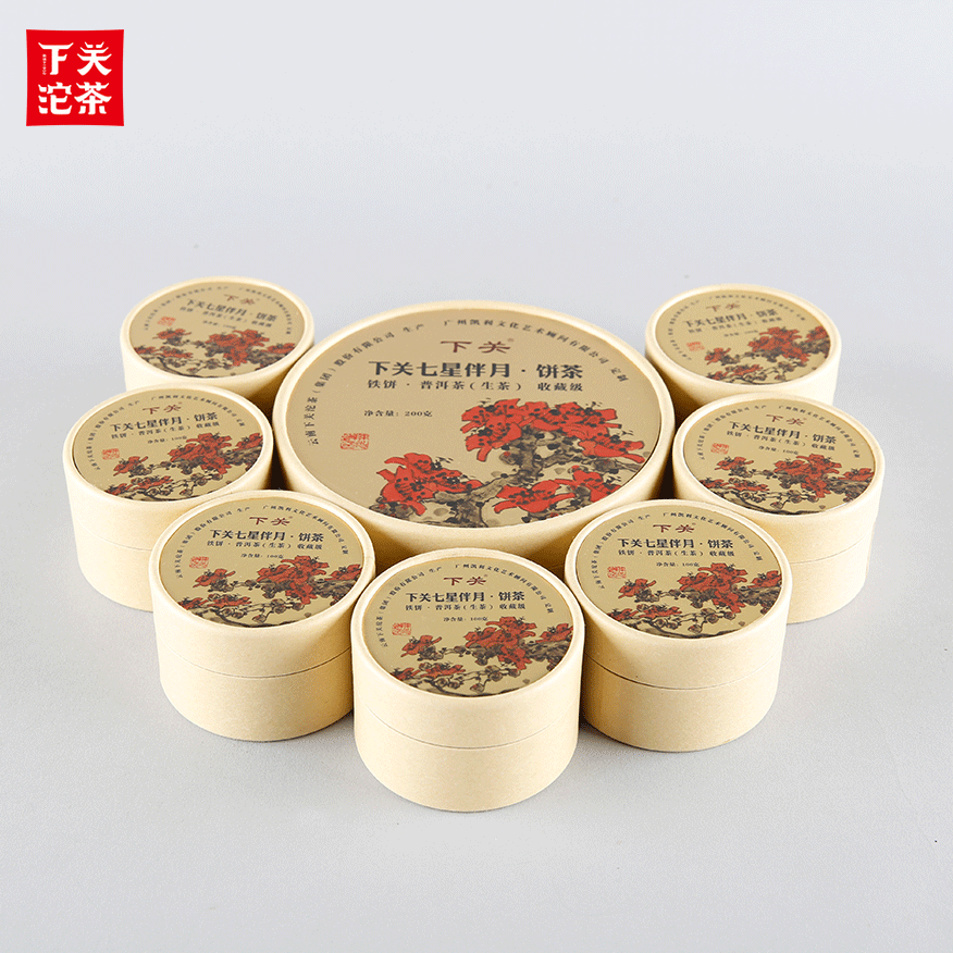 900克紙筒盒禮盒裝下關七星伴月餅茶(鐵餅)普洱茶(生茶)2018