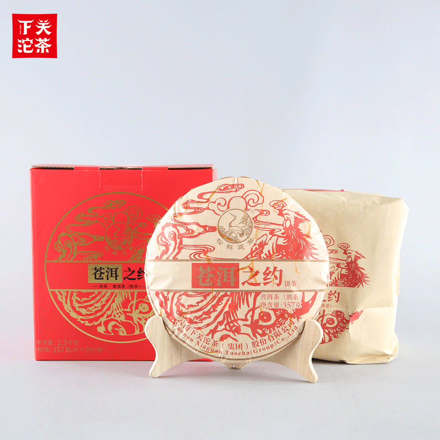 357克紙袋提盒裝蒼洱之約餅茶 普洱茶(熟茶)2019