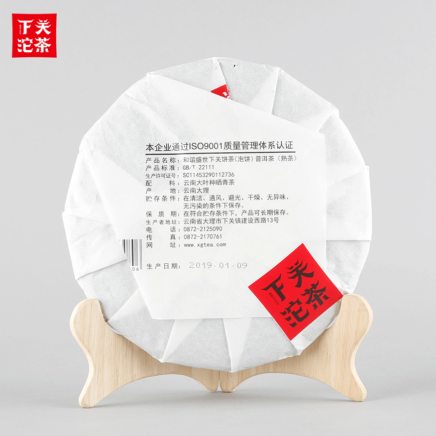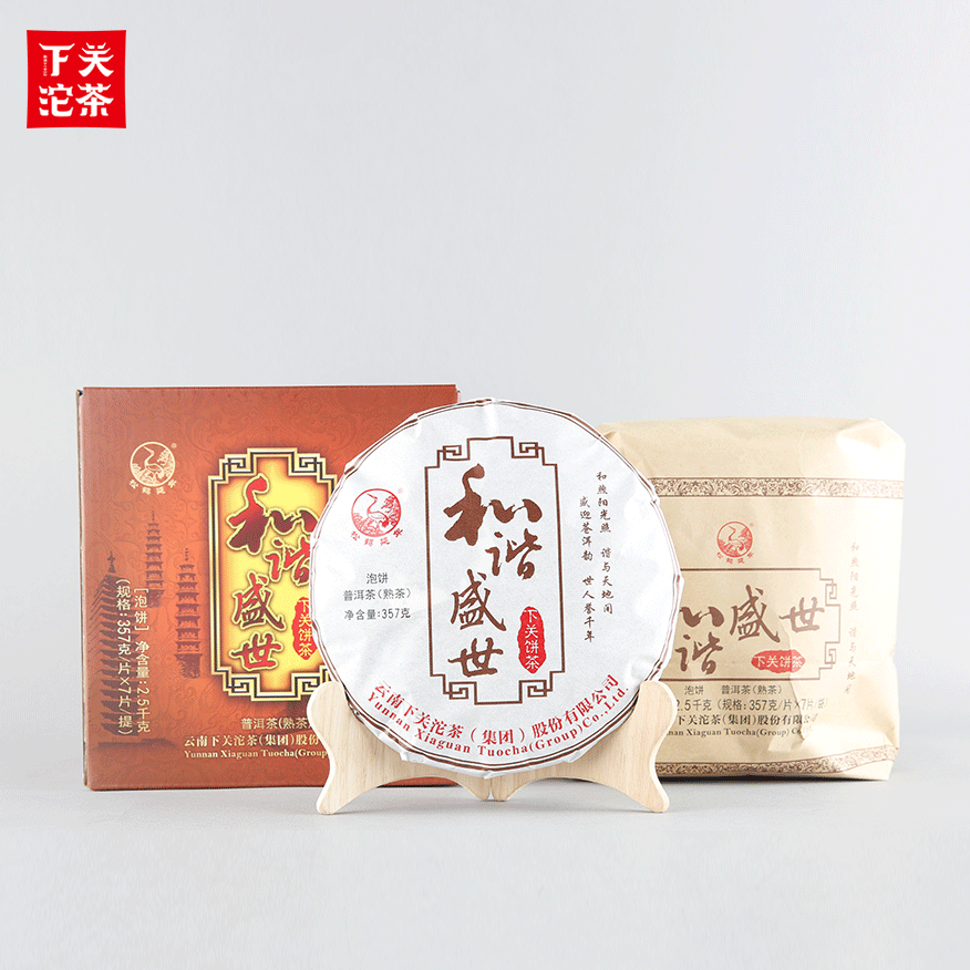 357克紙袋提盒裝和諧盛世餅茶 普洱茶(熟茶)2019