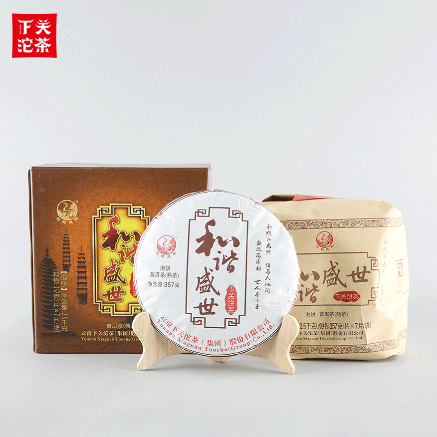 357克紙袋提盒裝和諧盛世餅茶 普洱茶(熟茶)2020