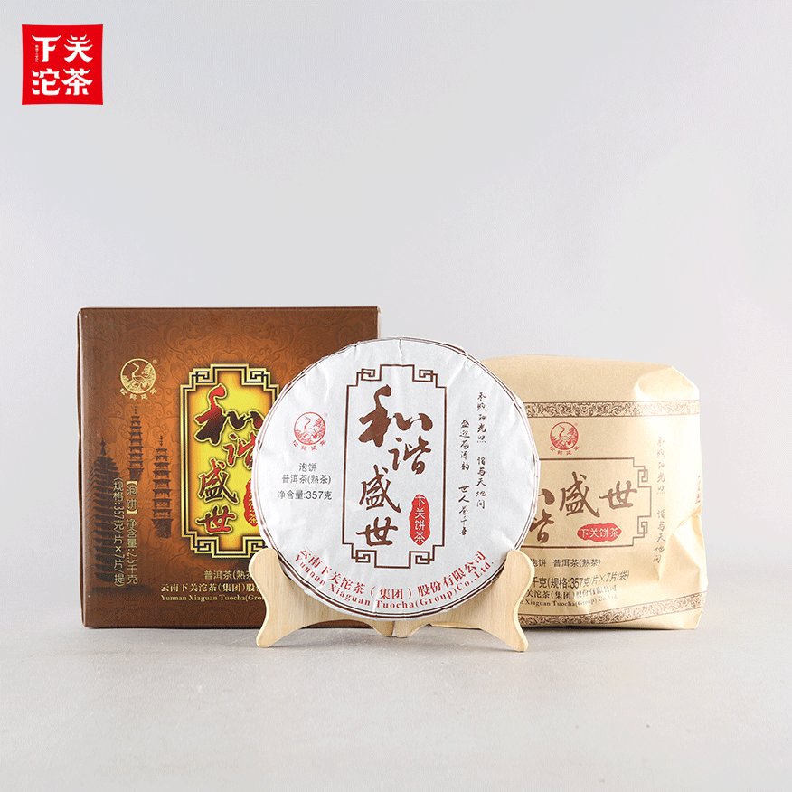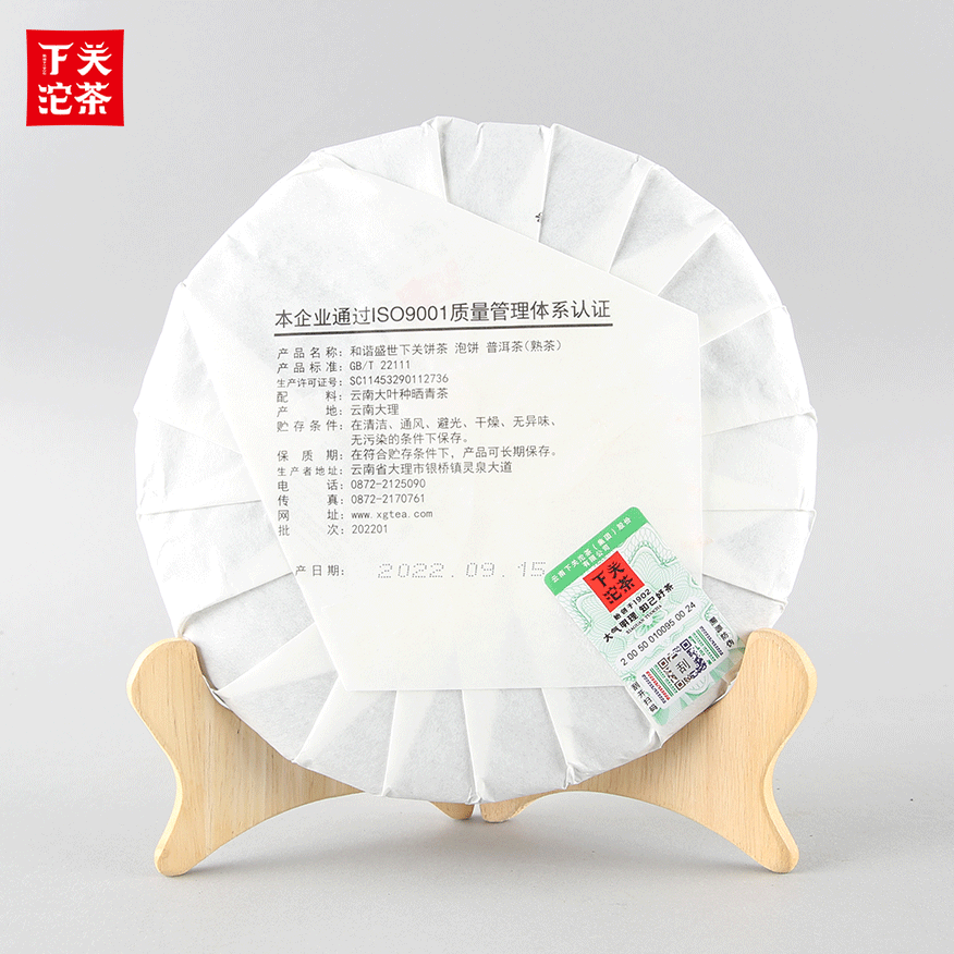 357克紙袋提盒裝和諧盛世下關餅茶 普洱茶(熟茶)2022