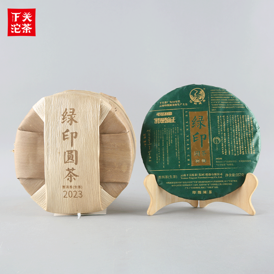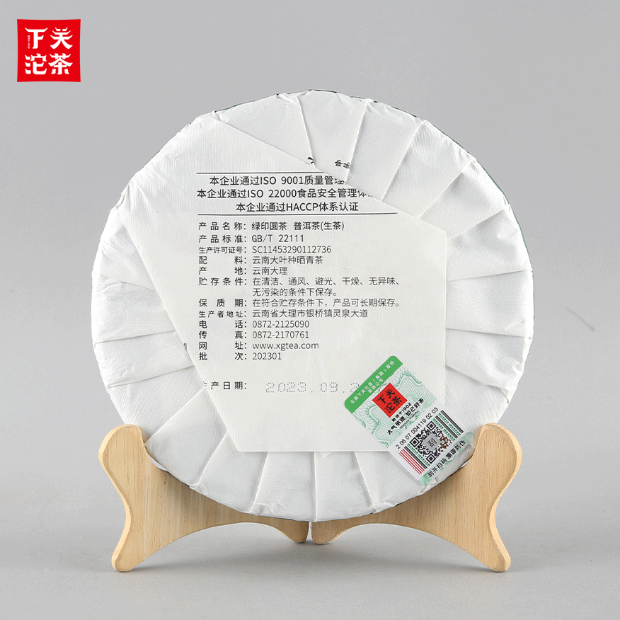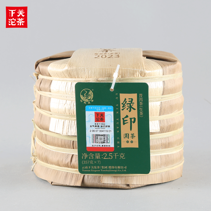 357克筍葉竹籃編織袋紙箱裝綠印圓茶 普洱茶(生茶)2023