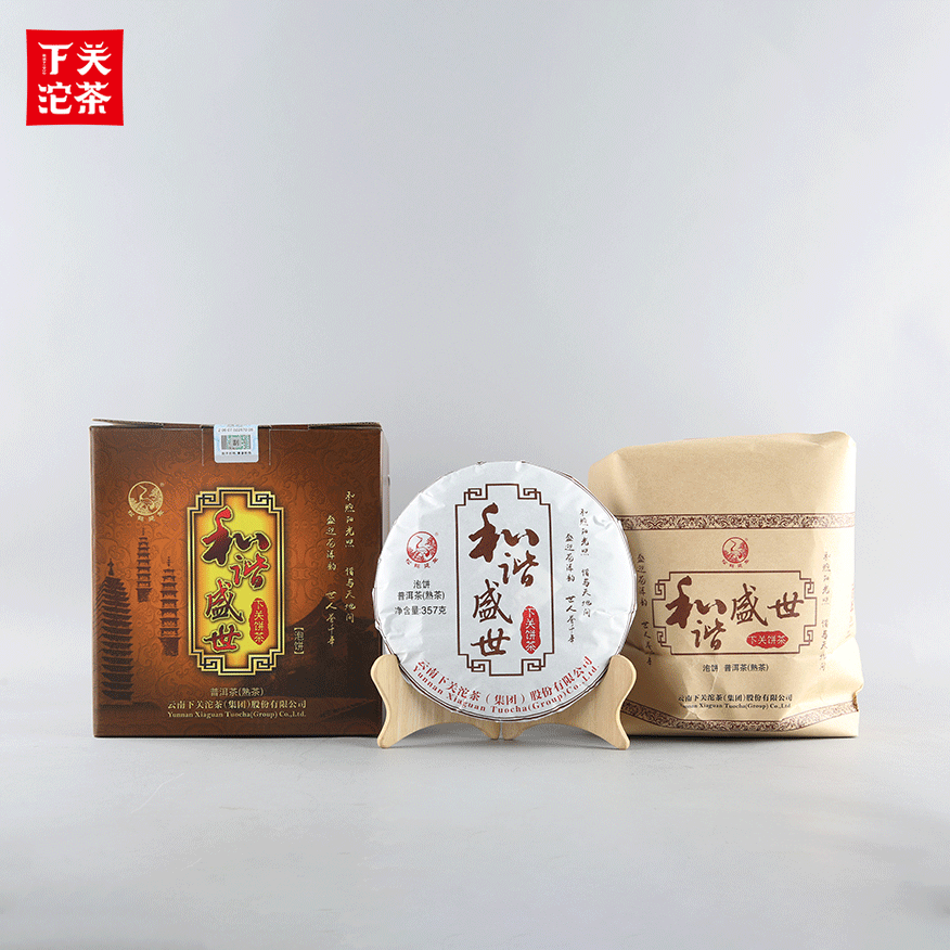 357克紙袋提盒裝和諧盛世下關餅茶泡餅 普洱茶(熟茶)2024