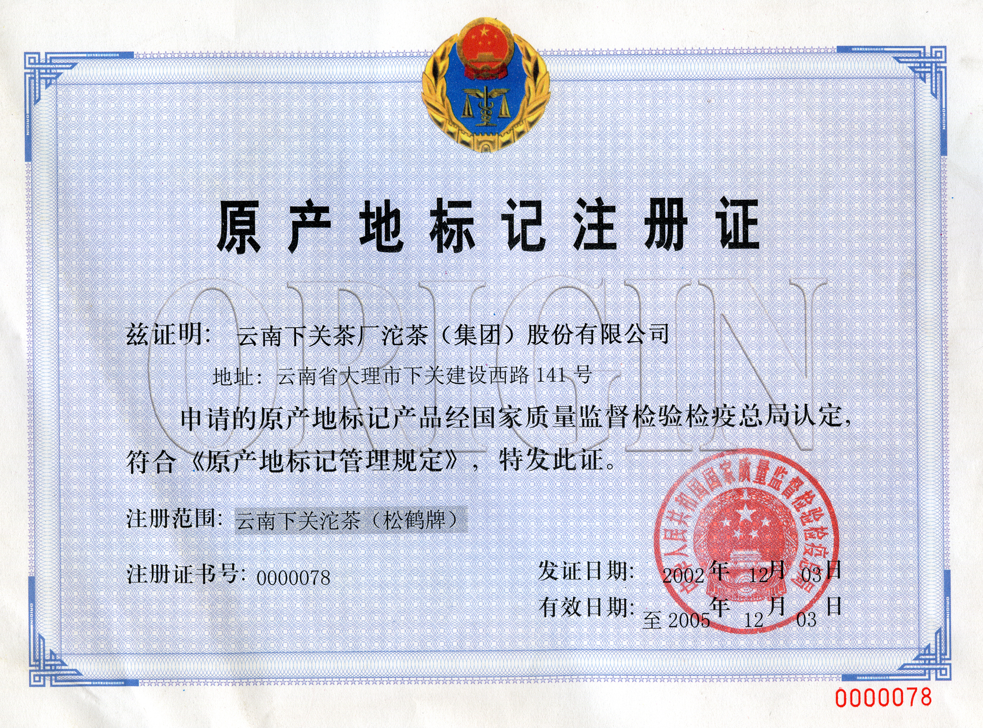 2002年12月 原產地標記注冊產品 國家質量檢驗檢疫總局