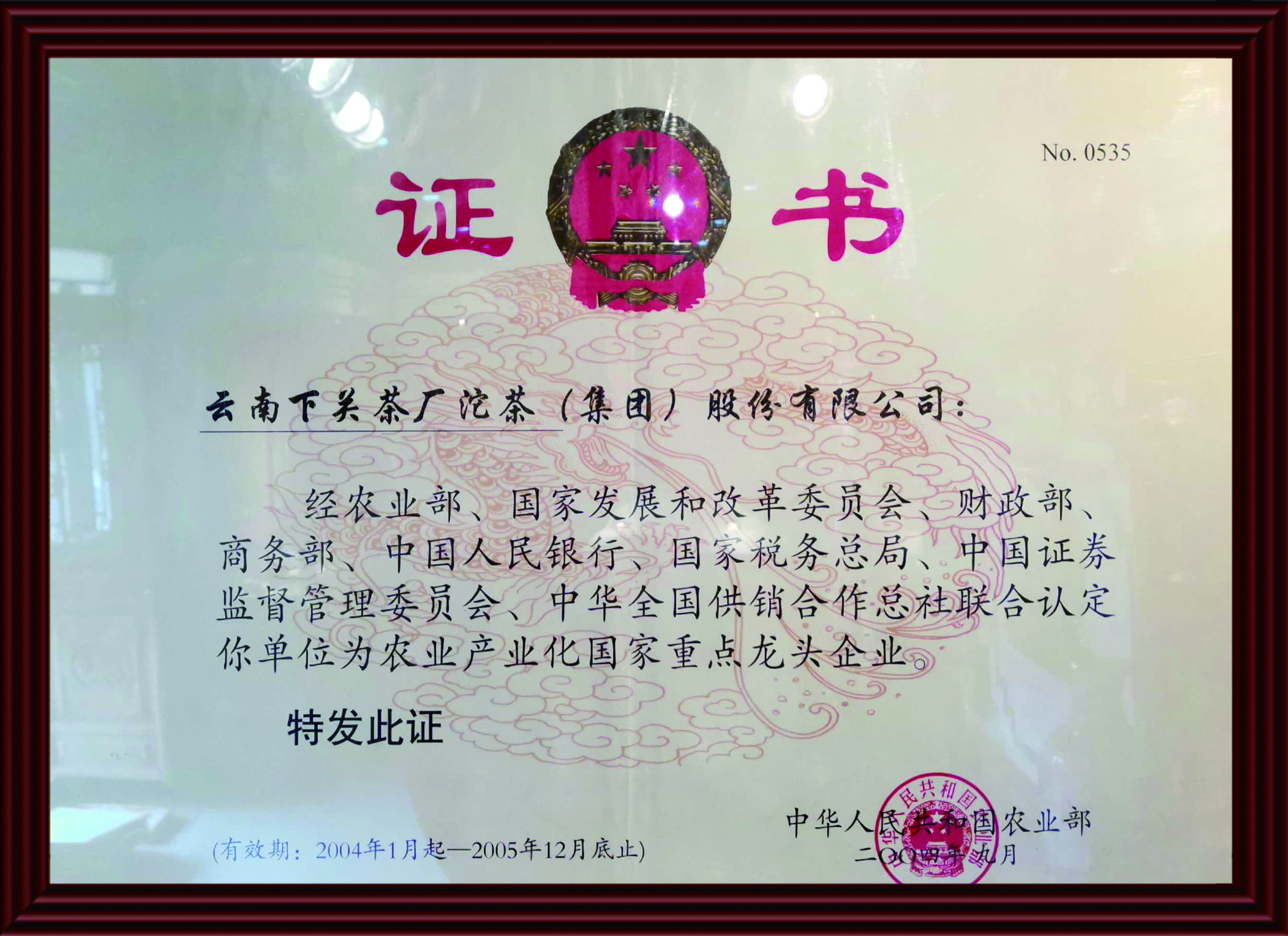 2004年9月 農業產業化國家重點龍頭企業 國家農業部