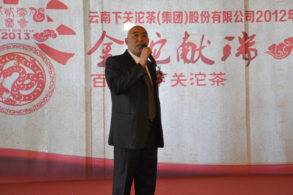 會(huì)上,總經(jīng)理陳國(guó)風(fēng)發(fā)表了熱情真誠(chéng)的祝辭:他感謝全體員工對(duì)公司發(fā)展做出的奉獻(xiàn),展望了下關(guān)沱茶的發(fā)展前景,語重心長(zhǎng)的囑咐大家時(shí)刻把質(zhì)量和顧客放在首位,并向大家送上新春的祝福!