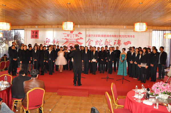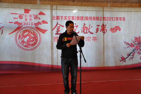 年會(huì)上,公司總經(jīng)理助理、市場(chǎng)部經(jīng)理杜發(fā)源向大家通報(bào)了下關(guān)沱茶新的視覺識(shí)別系統(tǒng),傳達(dá)了新標(biāo)志和廣告語蘊(yùn)含的本土元素和下關(guān)沱茶以“大氣明理做人、一心一意做茶”的理念和追求。在回顧2012年的收獲時(shí),公司表彰了一批在2012年盡職盡責(zé)、努力工作的優(yōu)秀員工;由公司管理人員組成的團(tuán)隊(duì)代表全體員工莊嚴(yán)承諾:以市場(chǎng)營(yíng)銷為關(guān)注焦點(diǎn),以產(chǎn)品質(zhì)量為永恒追求,踐行大氣明理,傳承知己好茶!