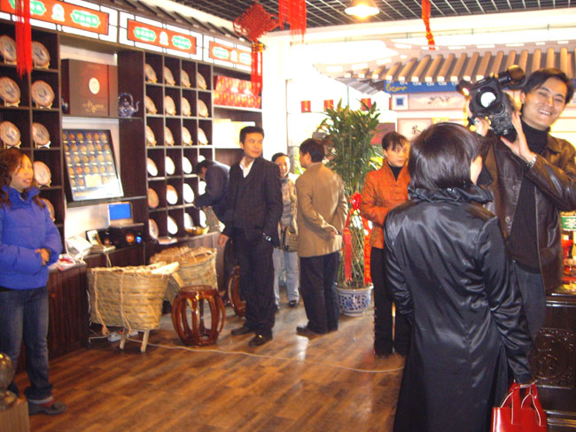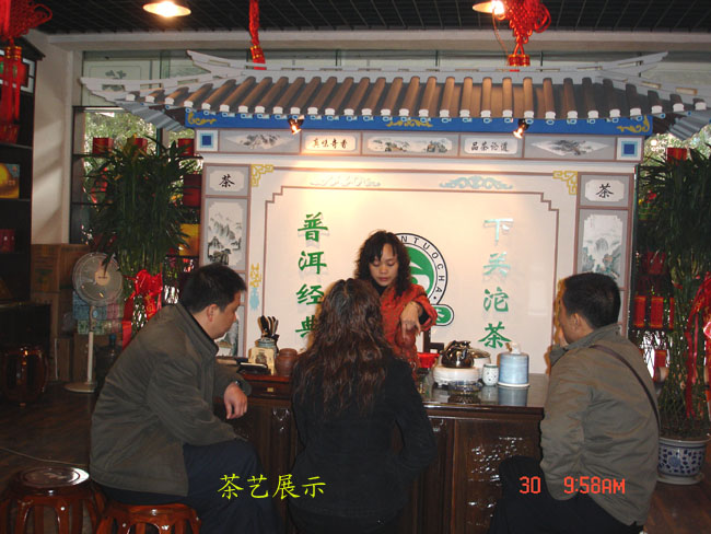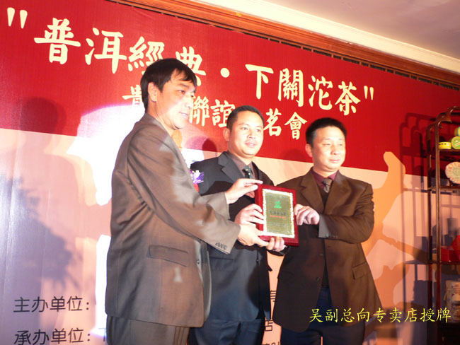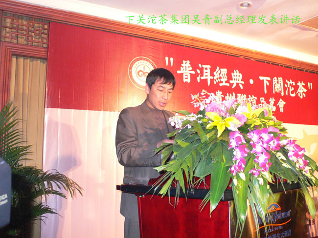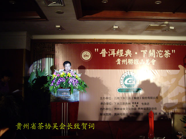 下午三點(diǎn)半兩家專賣店在貴陽天怡豪生大酒店舉行“百年經(jīng)典.下關(guān)沱茶”貴州聯(lián)誼品茗會(huì)。會(huì)場(chǎng)張燈結(jié)彩.布置華麗,氣氛熱烈,兩百多名嘉賓參加會(huì)議。原貴州省長(zhǎng)王朝文向大會(huì)發(fā)來賀信,原貴州省委副書記.省政協(xié)主席龍志毅,原貴州省軍區(qū)司令員陳慶云將軍,原貴州省政協(xié)副主席陳天賦等老同志參加會(huì)議。貴州省民委,省文化廳,省科協(xié),省教育廳,貴州茶葉協(xié)會(huì),貴州食文化協(xié)會(huì)負(fù)責(zé)人參加品茗會(huì)。下關(guān)沱茶集團(tuán)公司副總經(jīng)理吳青到會(huì)祝賀,并向兩家專賣店授牌。會(huì)上茶藝師為嘉賓們作茶藝表演,向嘉賓們展示下關(guān)沱茶系列產(chǎn)品,并讓嘉賓們品嘗下關(guān)沱茶。貴州省著名書畫家親自為兩家專賣店題字作畫?!扒鹈澜斩?,沱茶淳香進(jìn)萬家”寫出了到會(huì)嘉賓肺腑之言。貴州電視臺(tái). 貴陽電視臺(tái). 貴州都市報(bào). 貴陽晚報(bào). 貴州商報(bào)等新聞媒體派出多名記者到場(chǎng)采訪并跟蹤報(bào)導(dǎo)。