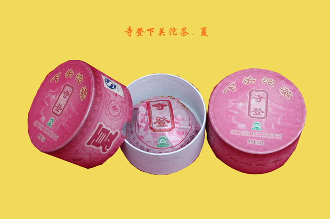 寺登下關(guān)沱茶優(yōu)選云南高級(jí)大葉種曬青春茶原料,經(jīng)百年傳統(tǒng)工藝結(jié)合現(xiàn)代技術(shù)精制而成,具有四種不同口感的特色韻味和外形特征,體現(xiàn)了“百年經(jīng)典 下關(guān)沱茶”的傳統(tǒng)精湛技藝。它由 “春、夏、秋、冬”四色不同包裝的下關(guān)沱茶組成,每款包裝均以著名的寺登四方街古戲臺(tái)為背景。寺登下關(guān)沱茶是茶葉愛(ài)好者品味和珍藏的理想茗品