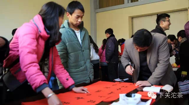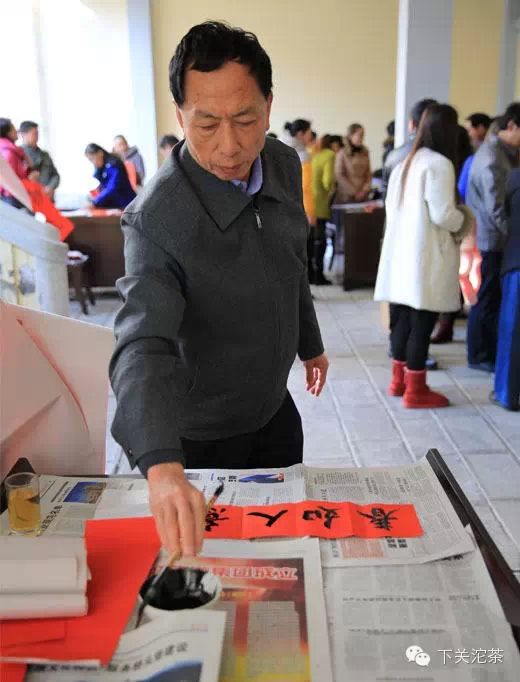 書法家在活動現場為公司員工書寫春聯