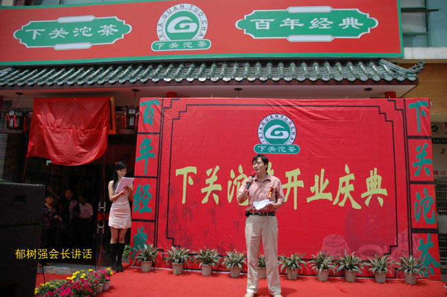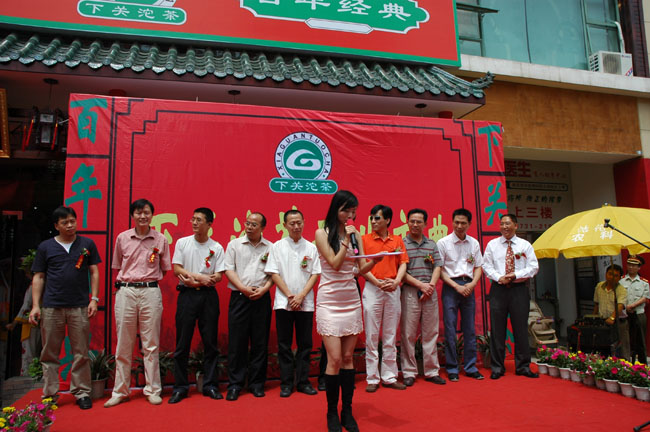 5月17日上午,在“2007國際茶業大會暨展覽會”即將開幕前夕,位于長沙市車站北路夢澤園A商鋪03號的“下關沱茶湖南爾福專賣店”舉行隆重的開業儀式。下關沱茶集團公司褚九云副總經理、湖南高橋茶葉協會郁樹強會長、湖南爾福專賣店湯旋清總經理、湖南怡清源茶業有限公司顏益龍常務副總經理等領導及嘉賓出席開業儀式,下關沱茶武漢、南京、柳州、江西等地區專賣店的總經理也應邀出席了開業慶典,整個開業慶典儀式隆重、喜慶。下關沱茶湖南爾福專賣店的開業,預示著下關沱茶品牌在瀟湘大地將進一步得到提升和推廣。