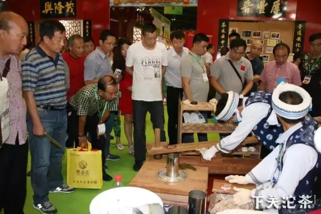 太原茶博會期間,下關沱茶集團公司將國家級非物質文化遺產――下關沱茶制作技藝帶到展位,讓各位茶友可以在現場觀看沱茶的制作。來自云南省大理市下關沱茶集團公司的幾位師傅現場為大家展示了沱茶制作技藝這一項非物質文化遺產,通過講解員現場講解拼配、篩分、揀剔、稱量、蒸揉、壓制成型、干燥、包裝等10余道工序,充分展示了手工操作完成沱茶制作的全過程,更有熱情的觀眾主動參與其中,制作自己的專屬沱茶收藏留念,此項展示贏得了大家的陣陣喝彩。