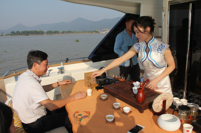 一直以來(lái)我們都是在花前月下、雅居茶室品飲下關(guān)沱茶百年陳韻,能夠?qū)⑾玛P(guān)沱茶茶藝帶上來(lái)自意大利的蒙地卡羅MCY65豪華游艇,在水天一色間品味茶藝之美、茶味之醇,不能不說(shuō)是將品茗文化的淡泊寧?kù)o升級(jí)到了一個(gè)遼闊高遠(yuǎn)、極致優(yōu)雅的新境界。