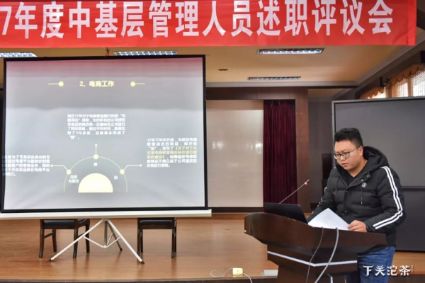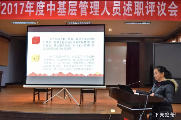 此次述職評議會由人力資源部組織,各管理部門、各生產車間共計48名中基層管理員工參加述職。下關沱茶公司領導,以及員工代表共同參會。述職人員結合幻燈片自述,所有參會人員(包含了述職人員的上司、下屬、業務流程前后同級部門)對述職管理人員按百分制打分,360度考核的形式進行。