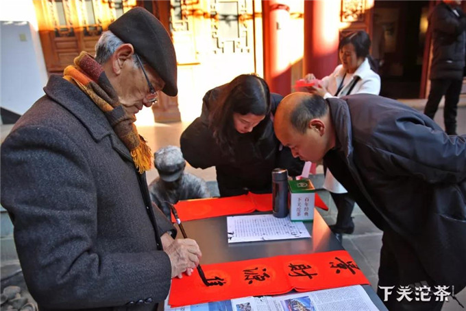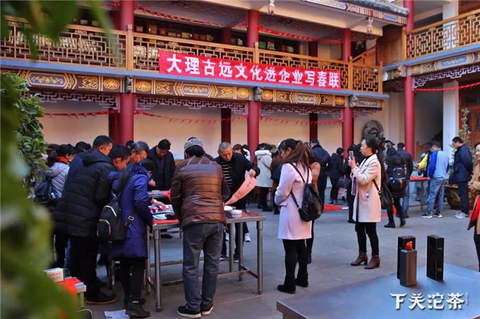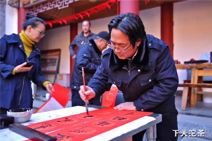 素日安靜的下關(guān)沱茶博物館,今天卻格外熱鬧與喜慶。大理州書法家協(xié)會(huì)的多位書法老師凝神運(yùn)筆,揮毫潑墨,將一對對飽含美好,寓意吉祥的祝福書寫在春聯(lián)上,濃濃的年味躍在紙上,隨著墨香在博物館內(nèi)散逸開來。員工們與書法家一同鋪紅紙、寫對聯(lián)、晾對聯(lián),一時(shí)間,地上、桌上紅彤彤一片,字里行間、一筆一劃滿是大家對2019年的期待與向往。紅紅的春聯(lián)、厚厚的情意、多多的祝福,緊緊圍繞著、溫暖著現(xiàn)場的每一個(gè)人。