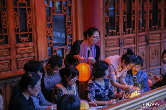 茶友利用現場的工藝制作包進行燈籠DIY制作,當晚不同造型,不同樣式的燈籠在各位巧手茶友中“呼之欲出”,閃耀奪目,手持燈籠仿佛行走于盛世唐朝,充滿時空穿梭感,讓人興趣盎然。