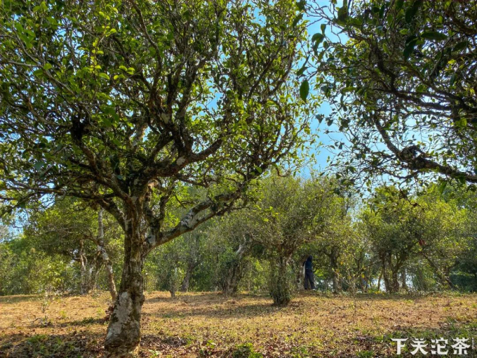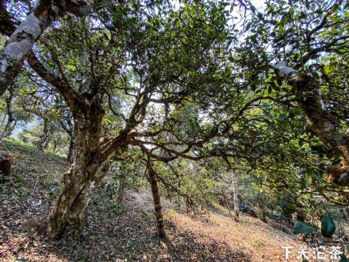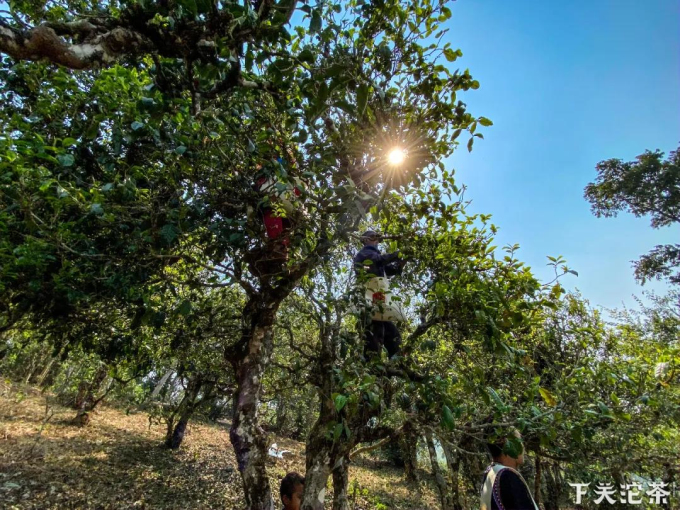 鑒茶團隊在公司駐點當地的質量員段自良的引導下,從保塘新寨魚貫而上來到古茶園,鑒證公司2020年選購的保塘古樹茶的春茶原料采摘。