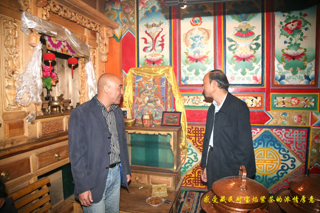 在參加下關沱茶集團公司向迪慶藏族自治州建州50周年贈送禮茶活動期間,8月28日上午,公司羅董事長、陳總經理在建塘鎮人大主任洛桑卓瑪的陪同下,走訪看望了寶焰緊茶傳統銷區部分藏民家庭--香格里拉縣建塘鎮諾西村霞那社藏民西康達家和尼公社扎巴家。