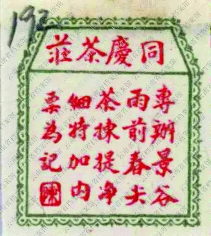 不過,這兩件事給陳家留下了同慶情結和茶行情結,在兒孫繁衍分家后,他們家族的一支干脆在1942年4月成立云南同慶茶莊,(后又改名同慶茶行,同慶老鋪等,由陳瑩軒長子陳汝昌負責經(jīng)營)。