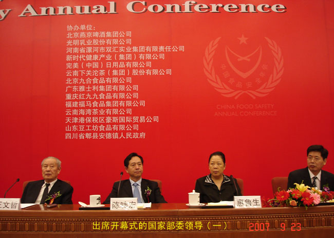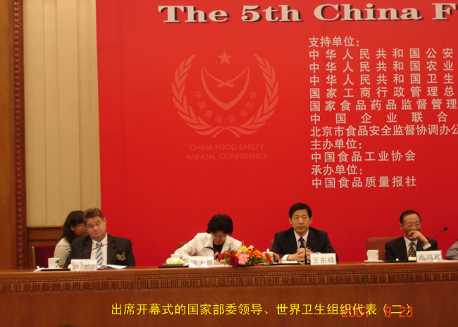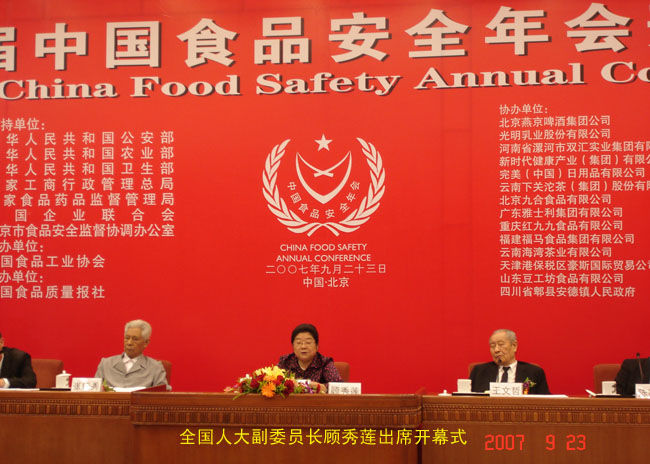 出席9月23日上午的中國食品安全年會開幕式的國家領導人有:全國人大常委會副委員長顧秀蓮,公安部副部長劉金國、農業部副部長高鴻賓、衛生部副部長陳嘯宏、國家食品藥品監督管理局副局長惠魯生、國家工商行政管理總局副局長王東峰等領導。原定出席開幕式的中央政治局委員、國務院副總理吳儀因公務未能出席,也給大會發來賀電“祝第五屆中國食品安全年會圓滿成功!”,在開幕式上,顧秀蓮副委員長在會上作了“讓人民分享食品安全福祉”的重要講話。