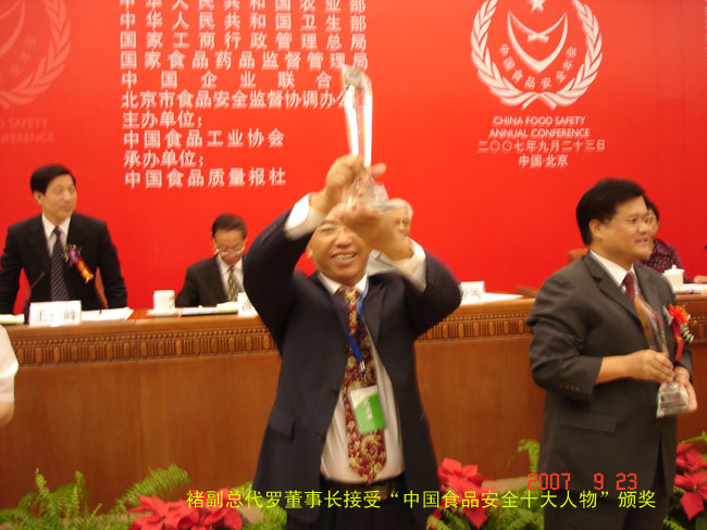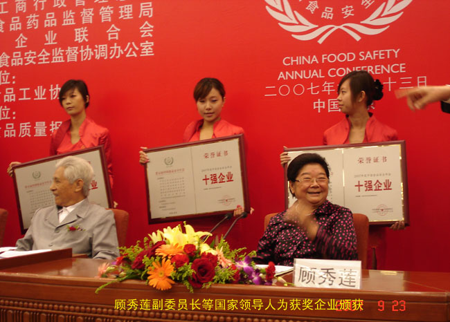 第五屆中國食品安全年會對一年來在我國食品安全上做出突出成績的十佳企業和個人進行了表彰,下關沱茶(集團)股份有限公司榮登“中國食品安全十強企業”榜,顧秀蓮副委員長親自為下關沱茶集團頒獎!公司成為中國茶葉行業唯一獲得這項殊榮的企業。公司董事長羅乃?曰瘛爸泄?食品安全十大人物”榮譽。