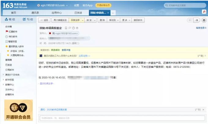 2020年10月26日我公司收到消費者王先生電子郵件,稱其近日在某多多電商購物平臺未經授權店鋪購買的 “2004年下關特級沱茶”疑似假貨,向公司申請對該產品進行真假鑒定。