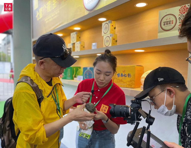 展會期間多家媒體來到下關沱茶展位,進行采訪直播,讓遠方未能蒞臨茶博會的茶友也能近距離了解到看到下關沱茶。