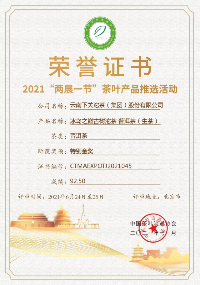 其中冰島之巔古樹(shù)沱茶榮獲特別金獎(jiǎng),1959金蒼洱沱茶、彎弓公社古樹(shù)餅茶榮獲金獎(jiǎng)。既是對(duì)下關(guān)沱茶百年技藝傳承的肯定,也是對(duì)下關(guān)沱茶核心拼配技術(shù)的認(rèn)可。