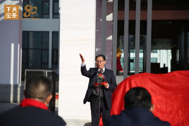 上午九點(diǎn)三十分,儀式由下關(guān)沱茶集團(tuán)公司副總經(jīng)理杜發(fā)源先生主持。董事長陳國風(fēng)先生致歡迎辭,為在座嘉賓介紹了銀橋項(xiàng)目建設(shè)情況及“下關(guān)沱茶館”,感謝在座嘉賓遠(yuǎn)道而來參與典禮。隨后,中共大理州委常委、副州長鄭新剛先生受州委書記、州長委托講話,為下關(guān)沱茶八十年取得的成就表示高度贊譽(yù),預(yù)祝下關(guān)沱茶前景更加廣闊,發(fā)展更上一層樓。接下來,下關(guān)沱茶集團(tuán)公司總經(jīng)理褚九云先生向在座嘉賓介紹下關(guān)沱茶銀橋廠區(qū)綠色食品加工基地的情況。最后,云南省政府原副省長、省政協(xié)原副主席,云南省茶葉流通協(xié)會(huì)創(chuàng)會(huì)會(huì)長陳勛儒先生愿下關(guān)沱茶以八十年歷史成就為基石,激勵(lì)自我,奮發(fā)開啟新的百年征程。