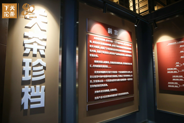 下關(guān)沱茶歷史文化陳列館有百年華章、關(guān)茶匠心,關(guān)茶珍檔和百年陳香四個(gè)陳列展廳,分別介紹:百年沱茶,特別是下關(guān)茶廠成立80年來的成就;下關(guān)茶業(yè)領(lǐng)先的生產(chǎn)工藝與技術(shù)成果;下關(guān)茶廠成立以來到2005年以前的珍貴(老茶)實(shí)物檔案;下關(guān)沱茶集團(tuán)產(chǎn)品的展示、體驗(yàn)與交流。