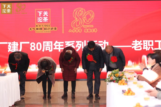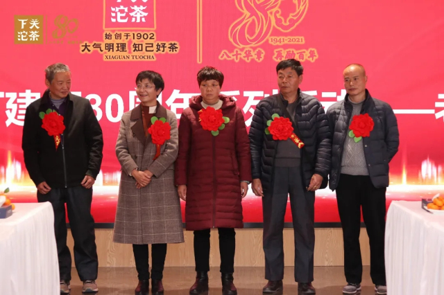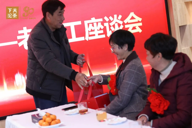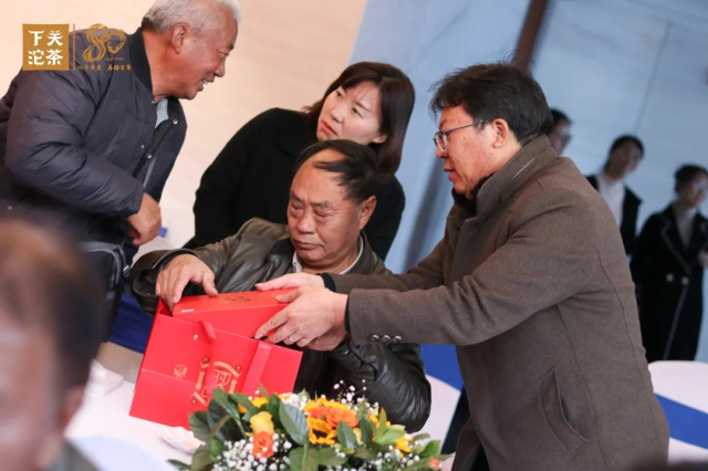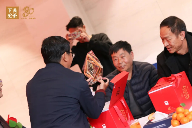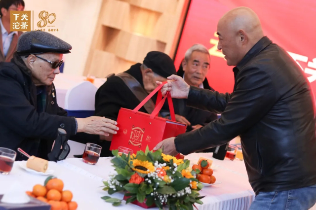 活動接近尾聲之時,公司的高層領導共同為到場的老前輩們送上具有歲月凝香的時光沱和下關茶廠建廠八十周年紀念牌,鐫刻美好時光,續寫人生華章!