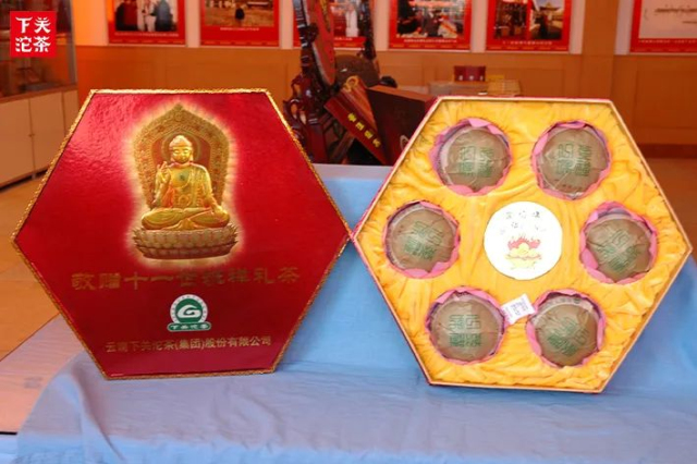 ▲下關茶廠向十一世班禪大師敬贈的寶焰牌禮茶