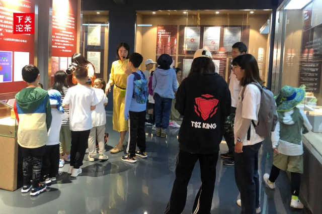▲夏令營(yíng)小朋友在參觀下關(guān)沱茶館