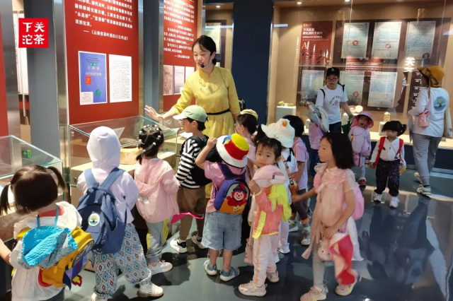 暑假期間,社會(huì)各界教育機(jī)構(gòu)組織小朋友們來(lái)參觀下關(guān)沱茶館。
