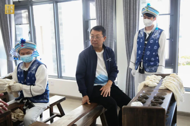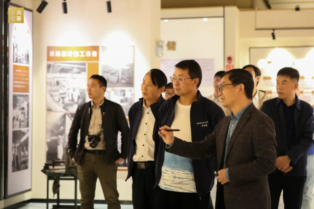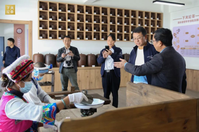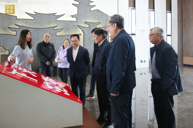 下關沱茶集團公司杜發源副總經理帶領中國工程院院士及專家團隊參觀下關沱茶館及中國(下關)沱茶研究院。參觀過程中,杜副總為嘉賓介紹了公司生產經營及銀橋新廠區建設情況,細致講解了下關沱茶館《百年華章》《關茶匠心》《關茶珍檔》《百年醇香》等展陳內容。