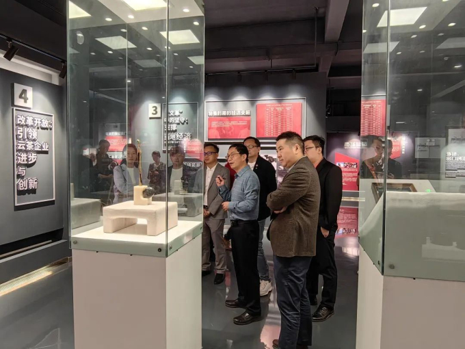 銀橋廠區(qū)整體布局按照“茶文化、茶科技、茶產業(yè)”統(tǒng)籌發(fā)展的思路,通過茶文化、茶科技的支撐進步促進茶產業(yè)健康有序發(fā)展,成為普洱茶行業(yè)“三茶”融合發(fā)展的佼佼者。在杜副總的帶領下,考察團一行參觀了下關沱茶館四大展廳,深度了解下關沱茶集團公司歷史文化、產業(yè)發(fā)展、生產技術、產品理念等內容。