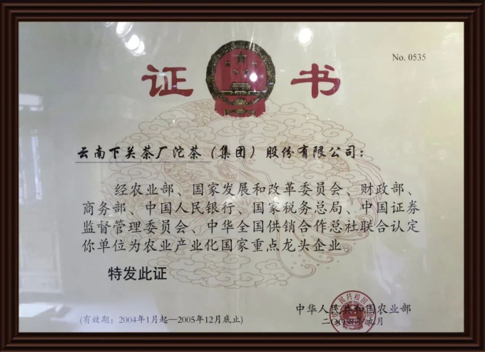 日前,國(guó)家農(nóng)業(yè)農(nóng)村部聯(lián)合發(fā)改委、商務(wù)部、中國(guó)人民銀行、證監(jiān)委、中華全國(guó)供銷合作總社公布了“第十次監(jiān)測(cè)合格和遞補(bǔ)農(nóng)業(yè)產(chǎn)業(yè)化國(guó)家重點(diǎn)龍頭企業(yè)名單”,下關(guān)沱茶集團(tuán)公司名列其中,這也是下關(guān)沱茶集團(tuán)獲得該資格認(rèn)定的第二十年。