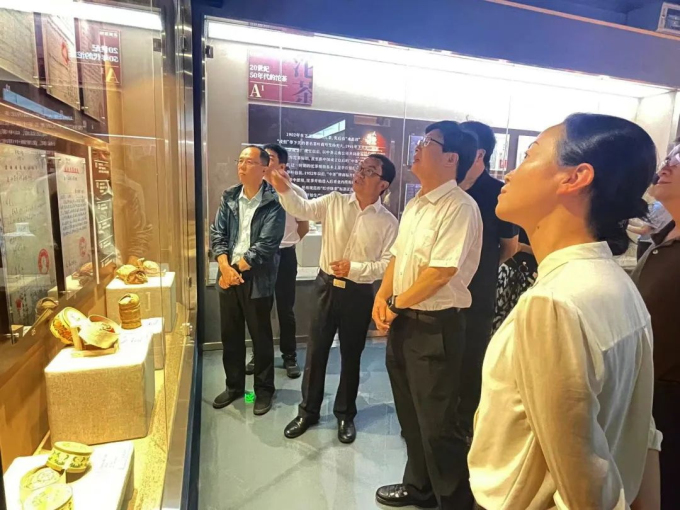 杜副總帶領(lǐng)考察組一行參觀了下關(guān)沱茶館四個(gè)展廳,為考察組介紹下關(guān)沱茶創(chuàng)制百年的深厚歷史、精益求精的制茶技藝、琳瑯滿目的關(guān)茶檔案之外,重點(diǎn)向陳副主席及考察組一行介紹下關(guān)沱茶與川渝地區(qū)相依百年的深厚“茶緣”。