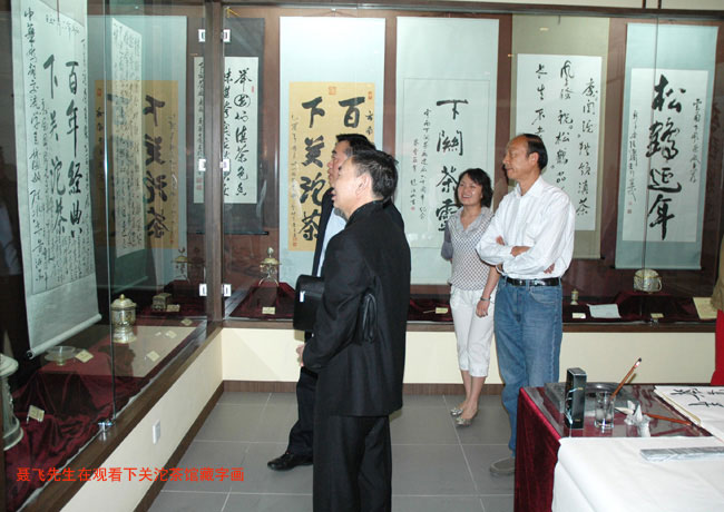 “五?一國際勞動節”是一個下關沱茶集團公司與文化名人結緣的日子。5月1日下午,當代著名書法家聶飛先生來到下關沱茶集團公司參觀,羅董事長陪同聶飛先生等一行客人參觀了下關沱茶博物館。