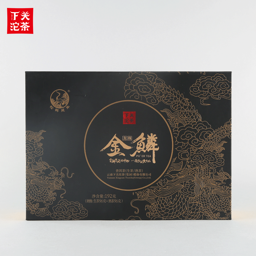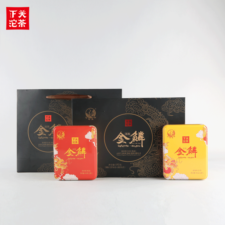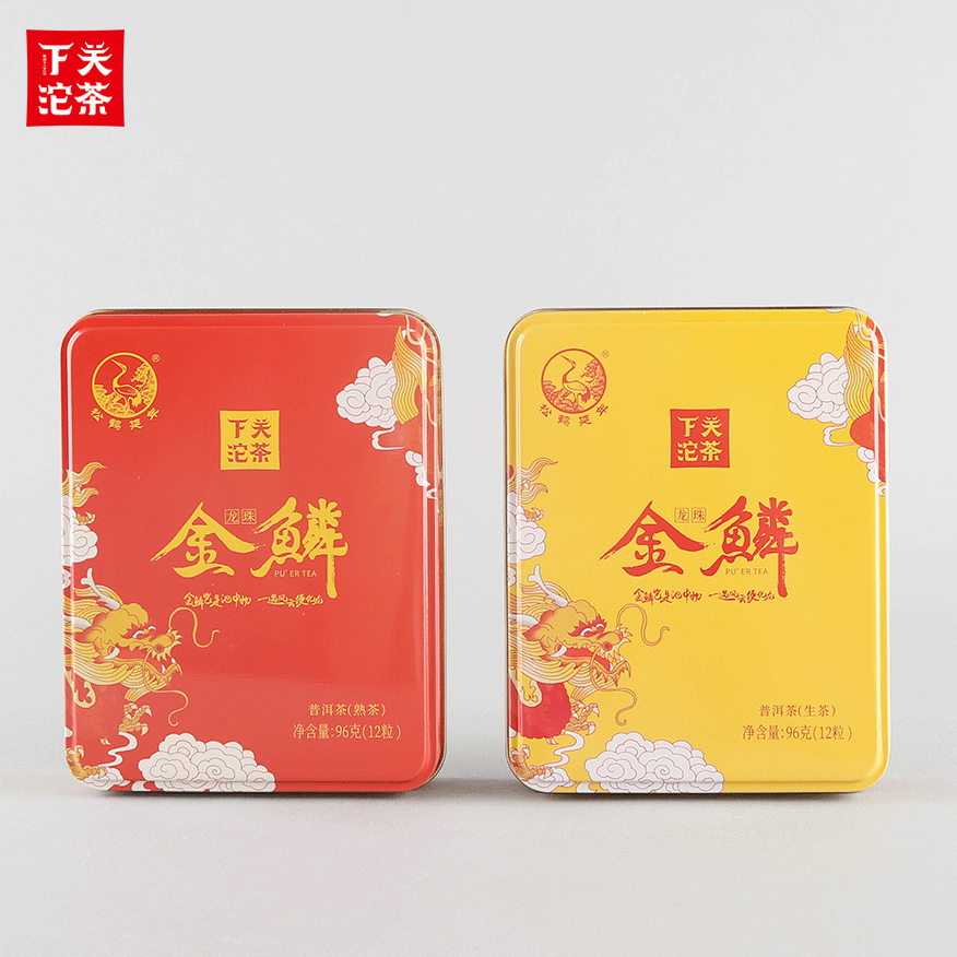 96克鐵盒禮盒裝金鱗龍珠 普洱茶(生茶+熟茶)2019