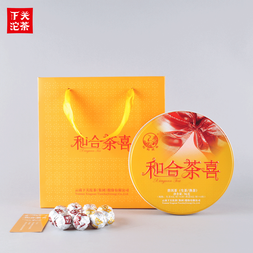 96克鐵盒禮盒裝和合茶喜(圓形裝) 普洱茶(生茶+熟茶)2019