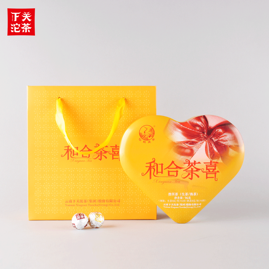 96克鐵盒禮盒裝和合茶喜(心形裝) 普洱茶(生茶+熟茶)2019