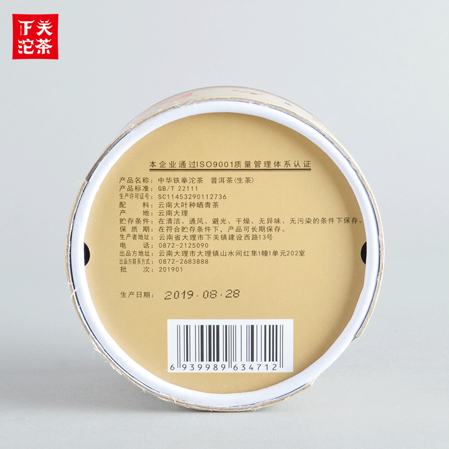 100克圓盒裝中華鐵拳沱茶 普洱茶(生茶)2019
