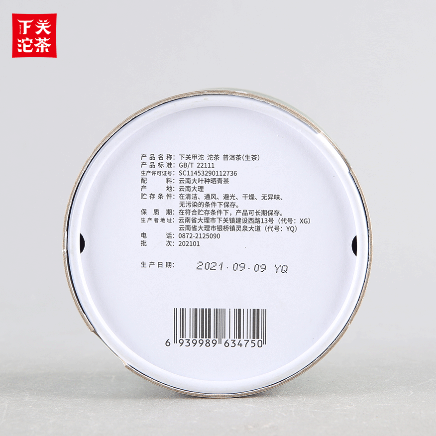 100克圓盒禮盒裝下關甲沱 普洱茶(生茶)2021