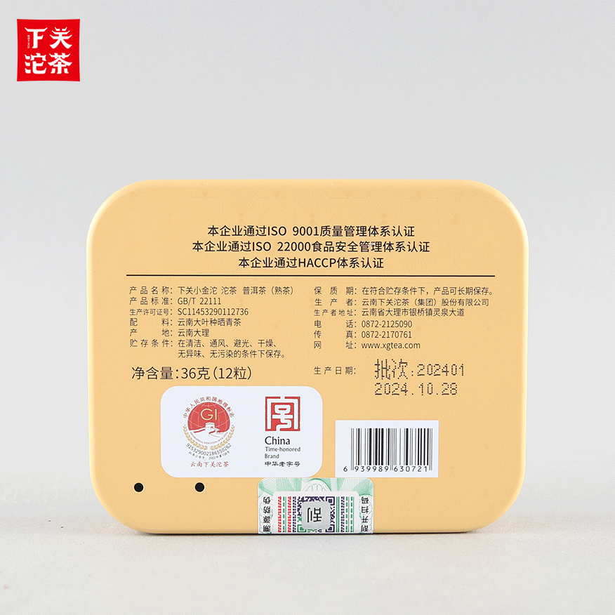 36克單盒裝下關小金沱 普洱茶(熟茶)2024
